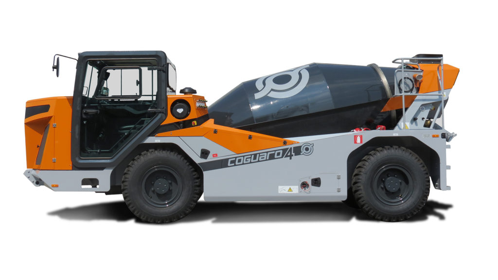 Cougar 4 is the first mixer designed to work in a mine. A new product, with an unmistakeable style. The prototype, developed also considering Italian-made style and design with a careful eye on ergonomics, will be used for special transport of concrete in the tunnels and mines. Small spaces and challenging working conditions; this is the ideal field for the new mixer to show off all its talents. 2 and a half metres tall, with 4 driving and steering wheels, it is fitted with a FOPS/ROPS anti-rollover cab and a drum with a maximum nominal capacity of 4 cubic metres. Equipped with electronic and video sensors to detect the position of any obstacles, the machine is efficient, reliable and offers lower fuel consumption.